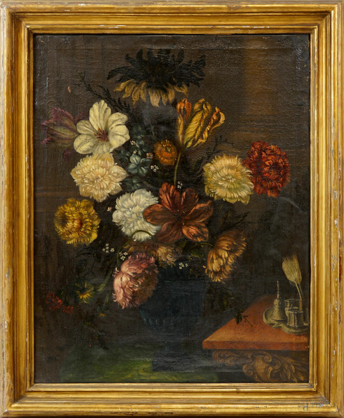 Natura morta con vaso di fiori, olio su tela, seconda metà del XVIII secolo, cm 93.5x74, entro co...