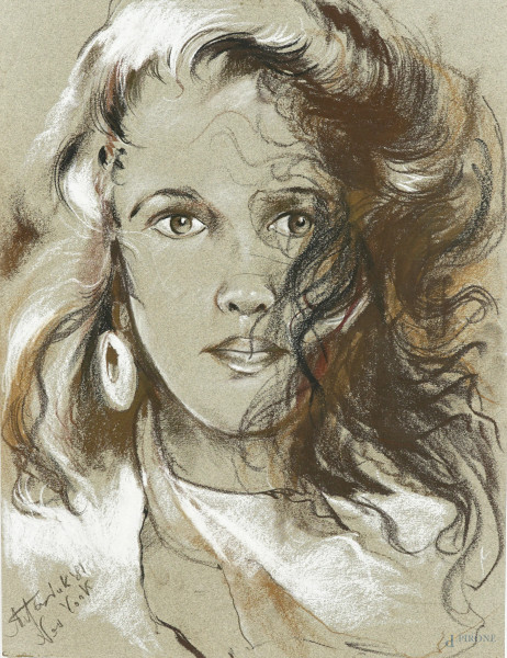 Ritratto DI Donna, Tecnica Mista Su Carta, CM 42 X 32,2, Firmato E Datato '81, Entro Cornice
