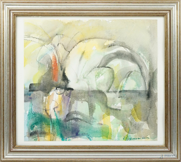 Senza Titolo, Acquarello Su Carta, CM 35 X 40, Firmato Valerio De Angelis, Entro Cornice