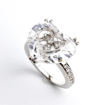 Collezione Happy Diamonds: anello a cuore in oro diamanti e vetro