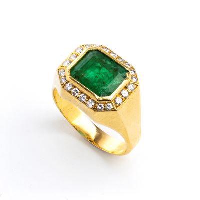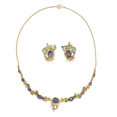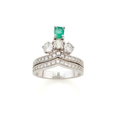 Lotto composto da due paia di orecchini con diamanti e smeraldi