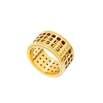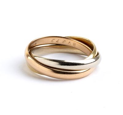 ANELLO A ELEMENTI SNODATI IN ORO GIALLO 18KT, BRILLANTI E RUBINI