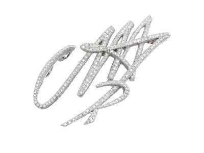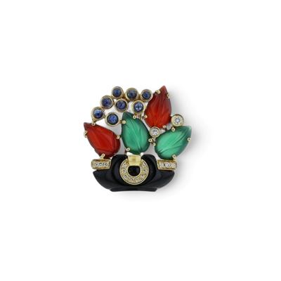 Vhernier. Spilla "Conchiglia" con diamanti, madreperla bianca, giada nera e cristallo di rocca