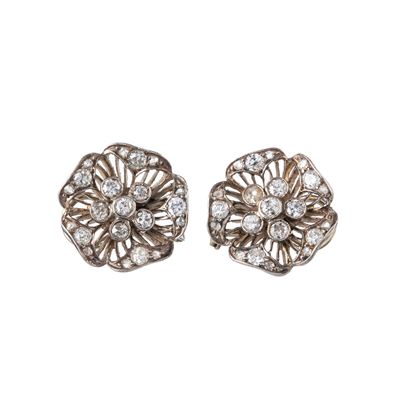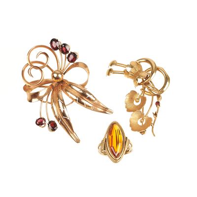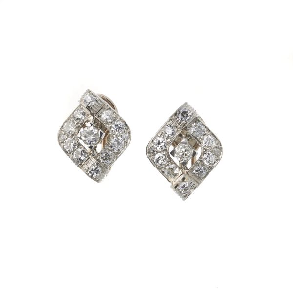 Lotto composto da una spilla, due anelli e due orecchini con diamanti