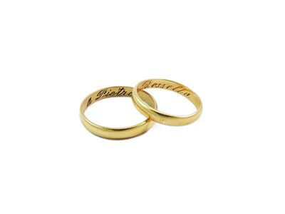Fedi nuziali in oro giallo di Rossella Segreto e Pietro Annigoni