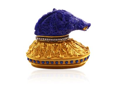 Sigillo da scrivania in oro con diamanti e lapislazzuli