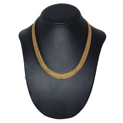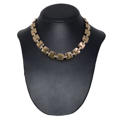 Parure con catena dorata a maglie triangolari composta da collana e bracciale