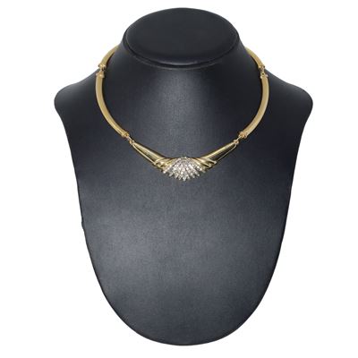 Parure composta da girocollo in metallo dorato e pietre e orecchini, Cascio