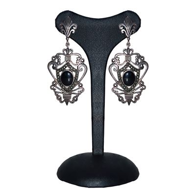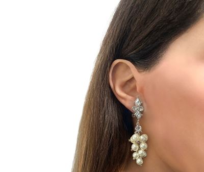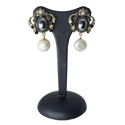 Orecchini alcozer con perla pendente, pietra centrale e piccola decorazione floreale