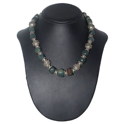 Collana Con Un Filo DI Sfere DI Eosite Con Due Divisori In Giada Bruciata E Sei Fili In Avventuri...