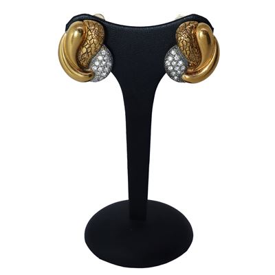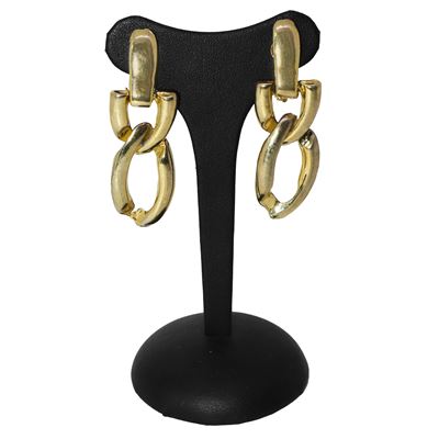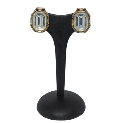 Orecchini in metallo dorato pendenti con chiusura a clip strass e motivo decorativo sul fronte