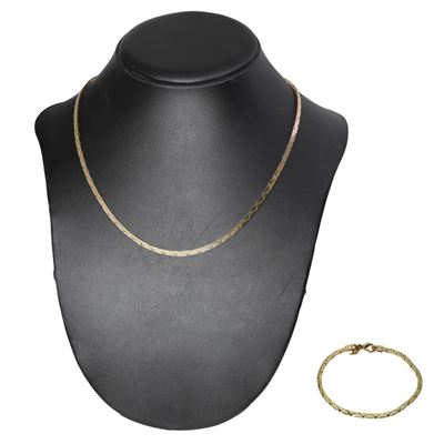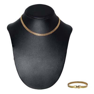 Parure composta da bracciale e collana a catenina in metallo dorato