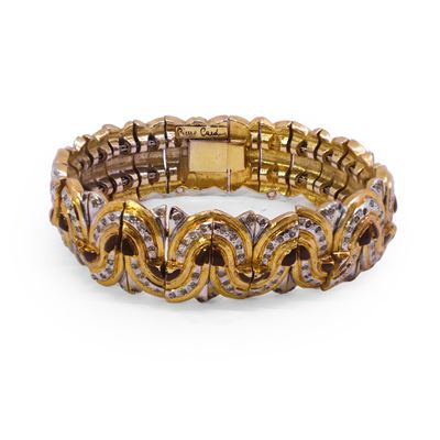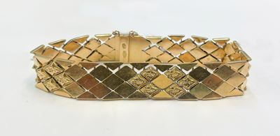 Bracciale in oro giallo 18kt lavorato a rombi con chiusura a scomparsa, gr. 24,7