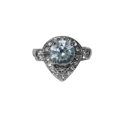 Anello in argento a goccia con pavè di zirconi e zircone centrale in rilievo