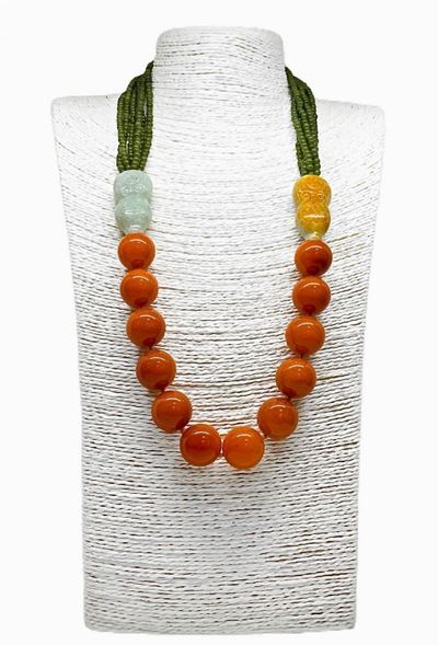 Collana composta da 1 filo di apatite con sfere lisce con ciondolo centrale orientale