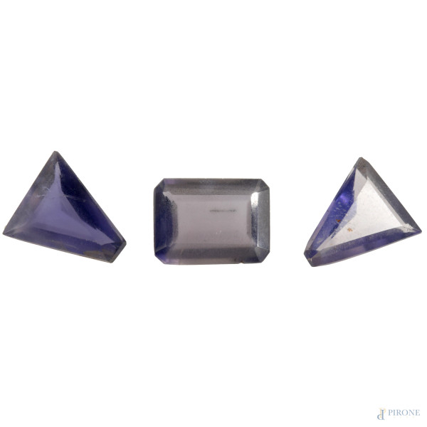Parure DI Tre Zaffiri: Rettangolare, Ct 2, MM 7,3 X 9,8 X 3,8; Triangolare, Ct 1,5, MM 9,4 X 8,4 ...
