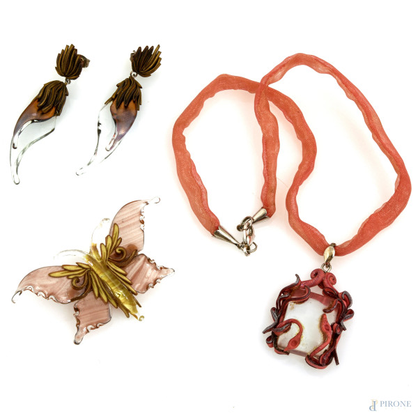 Lotto Composto Da Una Spilla, Una Collana E Un Paio DI Orecchini DI Bigiotteria In Pasta Vitrea, ...