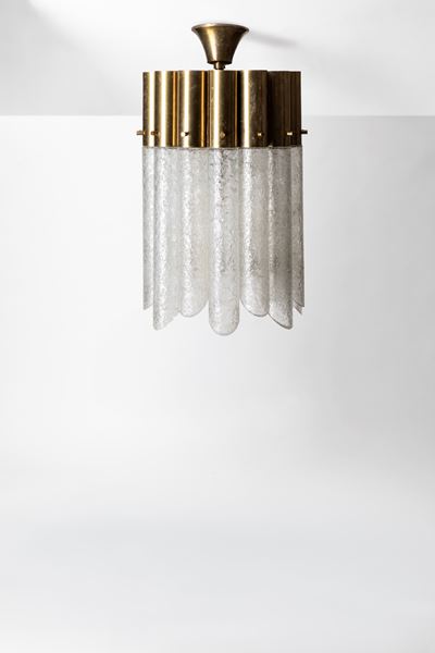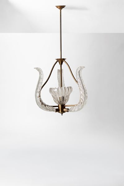 Barovier & Toso, Lampada a sospensione in ottone e vetro, circa 1940
