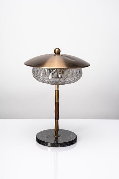 Sergio Mazza, Lampada da tavolo modello 'Alfa', ottone nichelato e vetro stampato