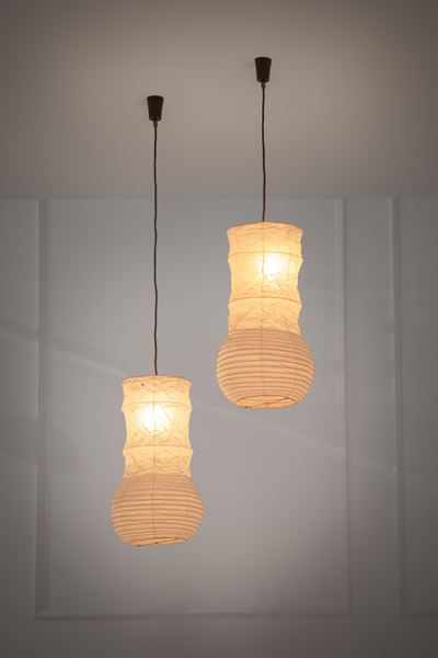 Jonathan De Pas, Donato D'Urbino, Paolo Lomazzi, Lampade a sospensione mod. Kazuko, legno di fras...