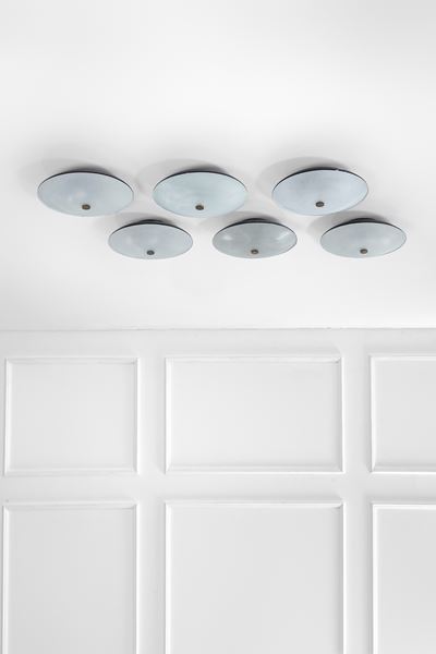 Stilnovo, Sei lampade a plafone in metallo verniciato, ottone e vetro stampato
