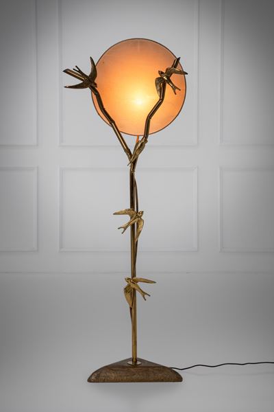 Angelo Lelii, Lampada da terra, ottone, vetro e marmo, circa 1953
