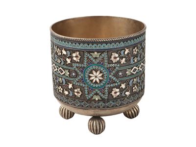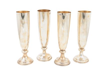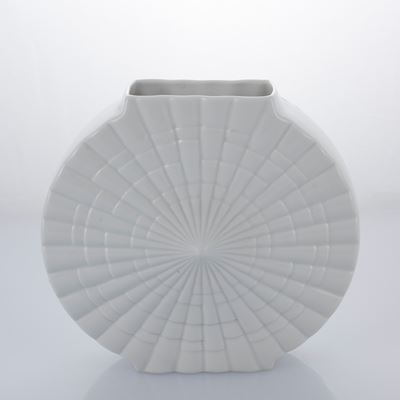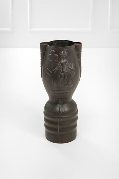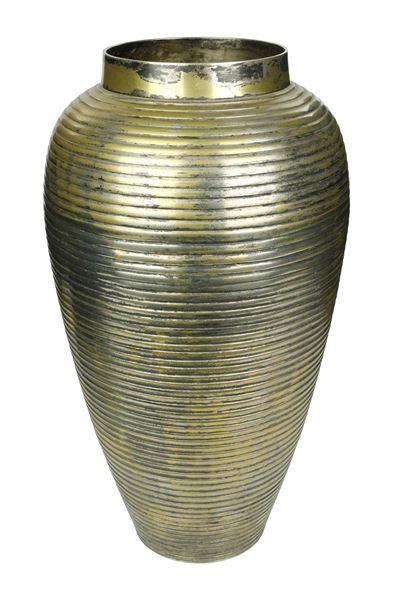 Vaso in metallo argentato realizzato con delicata cesellatura a fitti cerchi concentrici