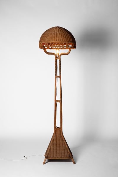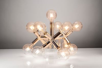 Lampadario in metallo dorato e vetro a sei luci. Inizio XX secolo