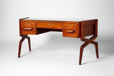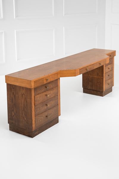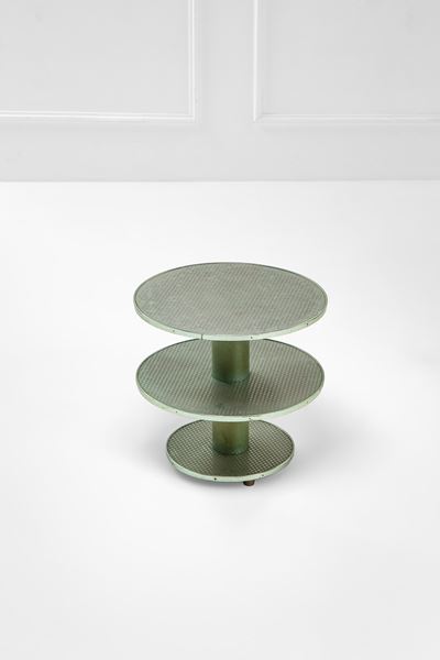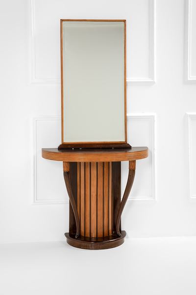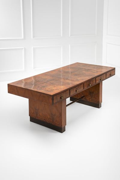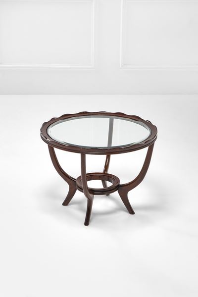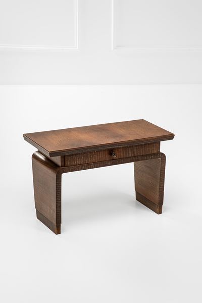 Tavolo lastronato con profili ebanizzati e piano in marmo rosso