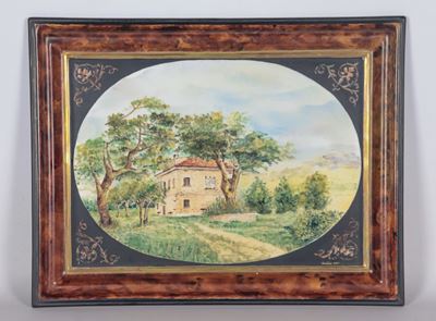 Mattonella In Ceramica Smaltata E Dipinta "Veduta DI Villa DI Campagna"
