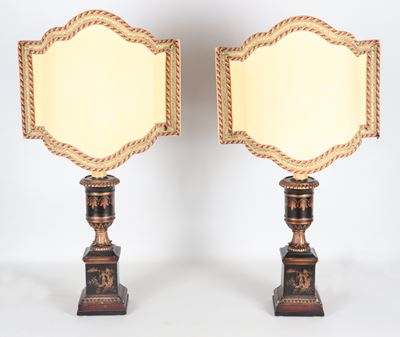 Coppia DI Lampade Francesi A Forma DI Anfore In Legno Laccato Nero