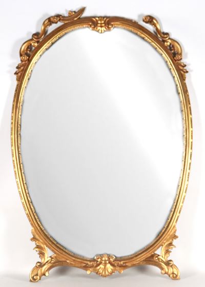Specchiera Ovale In Legno Dorato E Intagliato