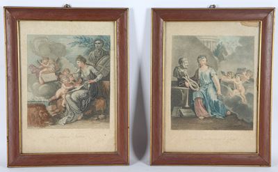 Lotto DI Quattro Piccole Stampe Francesi Acquarellate "Paesaggi Con Personaggi"