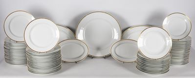 Servizio DI Piatti In Porcellana Bianca Richard Ginori, Con Bordo In Oro Zecchino, (75 Pz.)