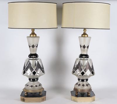 Coppia DI Antiche Lampade Francesi In Cristallo, Con Decori In Smalto Nero