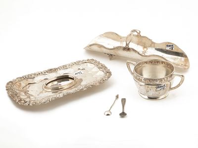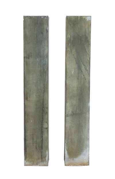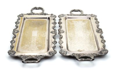 Coppia di vassoi rettangolari con grandi manici riccamente intarsiati l centro con bordo mistilin...