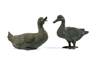 Coppia di sculture rappresentanti anatre decorazioni da giardino in bronzo di alta qualità fineme...