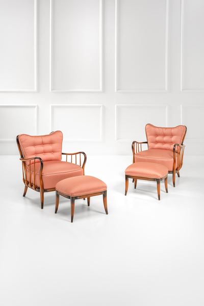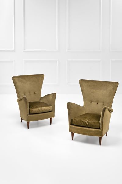 Coppia di poltrone in legno intagliato e dorato. XX secolo