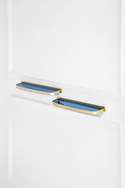Due mensole, vetro specchiato e metallo nichelato, 1970 circa