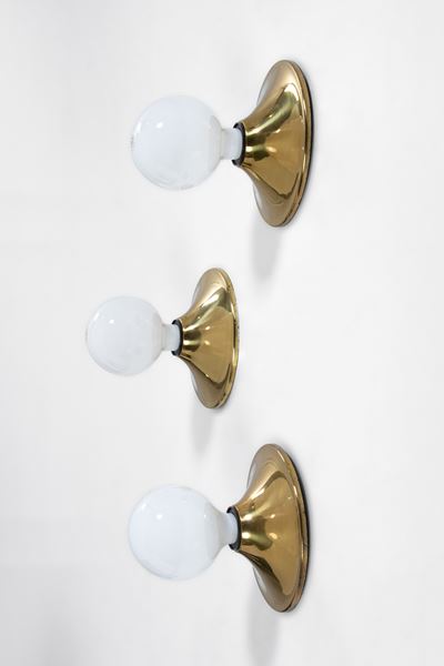 Lampade a plafone o da parete in ottone lucido, circa 1970