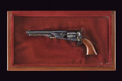 Importante Paio DI Colt Model 1851 Navy Con Incisioni DI Fabbrica Stile Gustave Young, In Cassett...