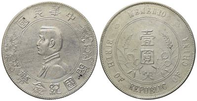 CINA. Sun Yat-sen. Dollaro 1927 "Memento". Ag (26,52 g; 38,5 mm)