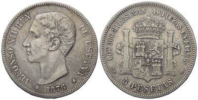 SPAGNA. Alfonso XII (1874-1889). 5 pesetas. Ag (24,50 g; 37 mm)