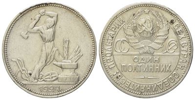 RUSSIA. URSS. Mezzo rublo, 50 copechi 1924. Ag (10 g; 26,5 mm)