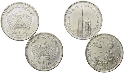 YEMEN. 2 Rials "Apollo 11" 1969. Lotto di due esemplari. Ag (25,05 g; 37 mm cad.)