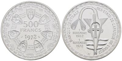 AFRICA OCCIDENTALE CFA. 500 franchi 1972, KM E7; Ag; 25gr