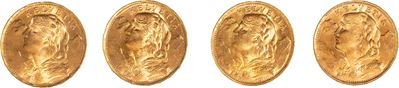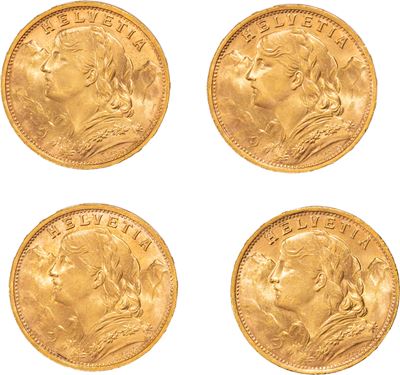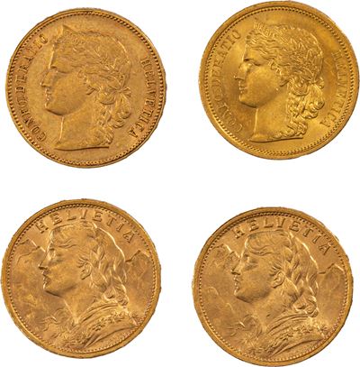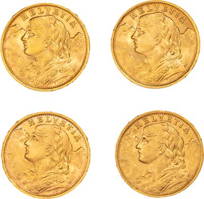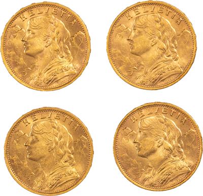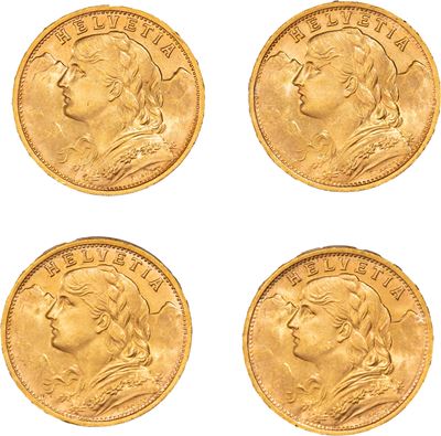 Stato Federale Svizzero - lotto di 4 monete da 20 Franchi