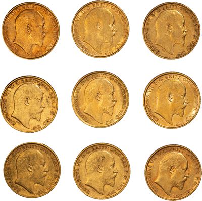 Lotto composto da nove 1/2 sterline Gran Bretagna - Territori Britannici d'oltre mare e dipendenz...