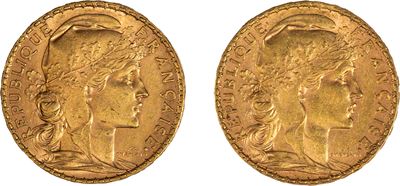 Terza Repubblica Francese - lotto di 2 monete da 20 Franchi