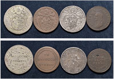 Stato Pontificio, Lotto di 4 monete in vari metalli